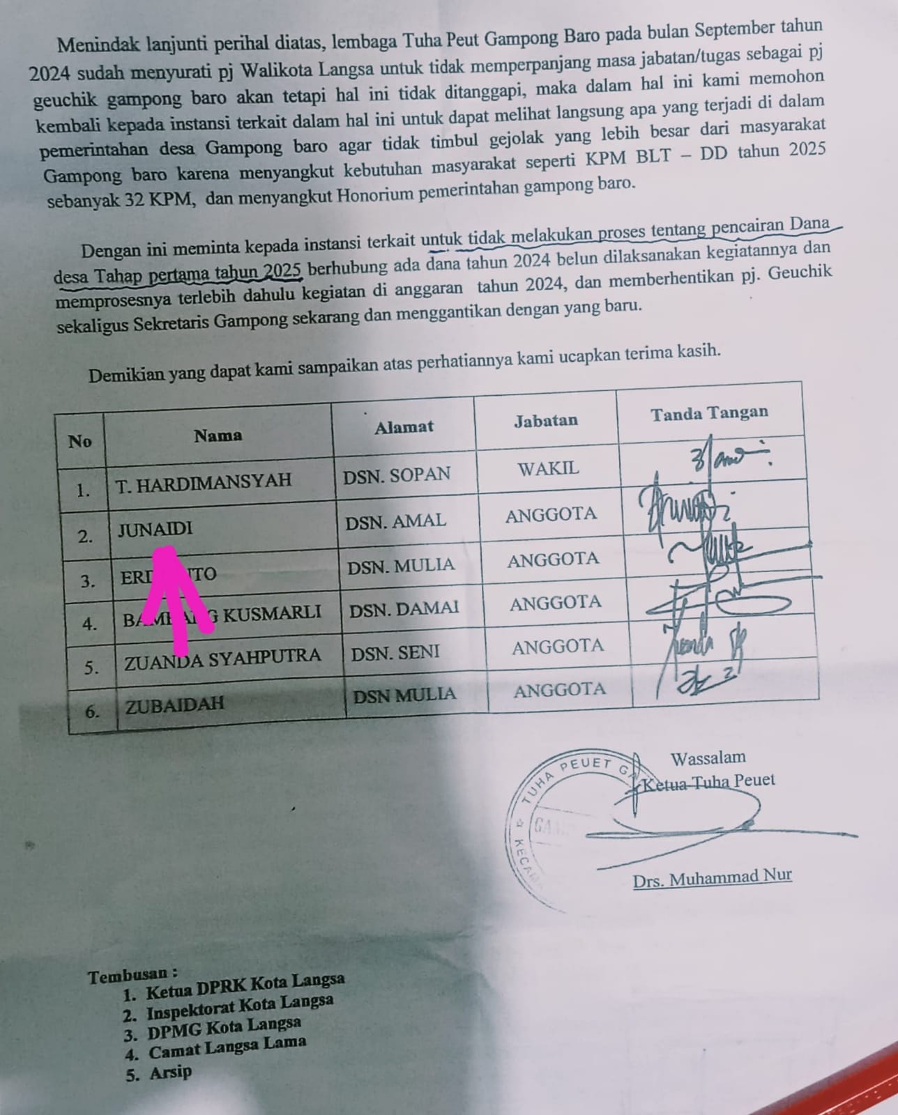 Demikian di sampaikan atas bantuan dan kerjasamanya kami ucapkan terima kasih. Tersebut nama pejabat utama serta di tanda tangani juga berstempel basah, wali kota langsa “Jefri Santana S Putra SE”.