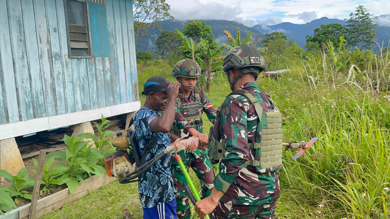 Satgas Yonif 521/DY yang bertugas di wilayah Papua kembali menunjukkan kepeduliannya terhadap masyarakat sekitar melalui kegiatan Karya Bhakti Kali ini, personel Satgas menyambangi rumah salah satu warga bernama Bapak Hoppet (41th) di Distrik Kobakma, Kabupaten Mamberamo Tengah.