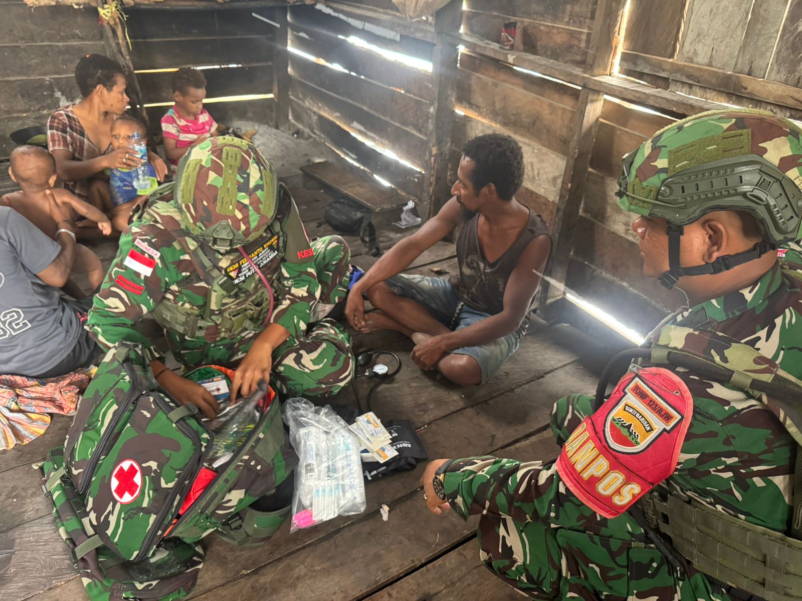 Pos Senggo Satgas Yonif 123/Rajawali kembali menunjukkan kepeduliannya terhadap kesehatan masyarakat dengan melaksanakan pelayanan kesehatan langsung ke rumah-rumah warga di Kampung Senggo, Distrik Citak Mitak, Kabupaten Mappi, Papua Selatan.
