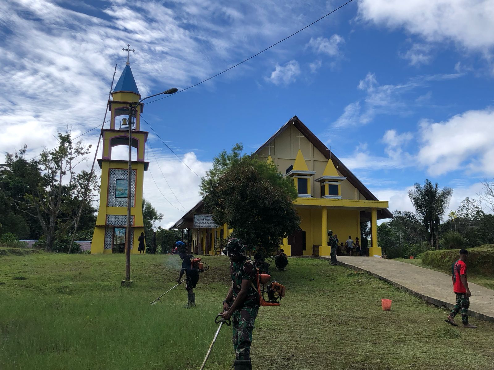 Satgas Pamtas Yonif 763/SBA Pos Bori Gelar Karya Bakti Kan Gereja Santa Monica